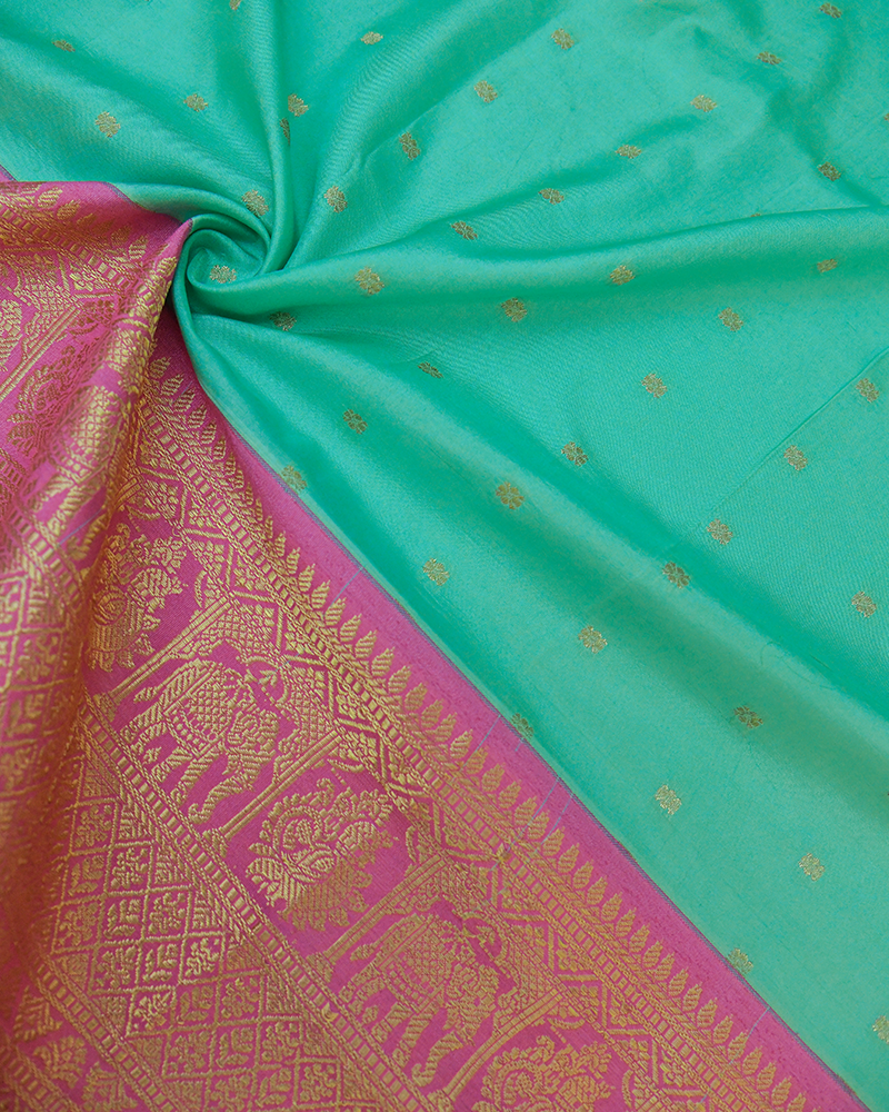 Seafoam Green & Power Pink Kanjivaram Silk Lehanga Fabric