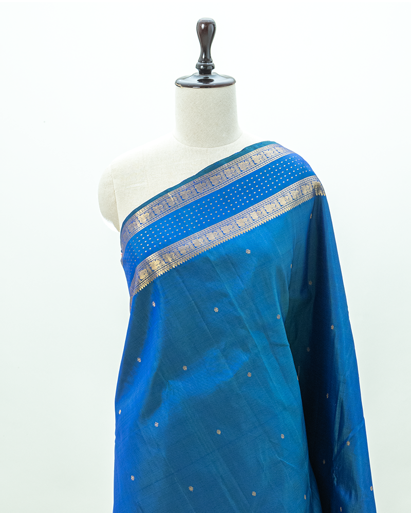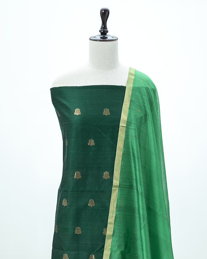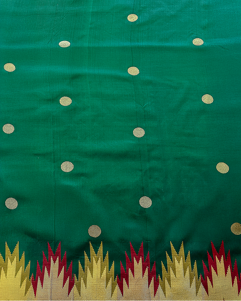 Bottle Green Temple Kadiyal Zari Butta Silk
