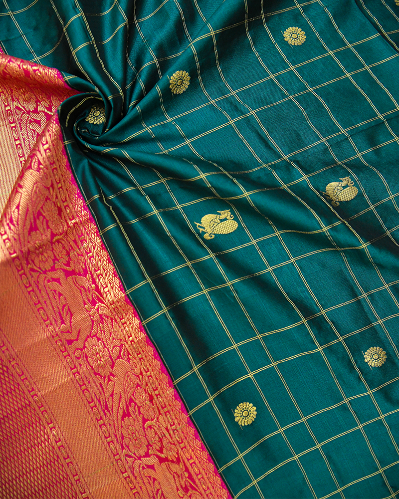 Turquoise Green Banaras Rawsilk Jaal Meena Fabric