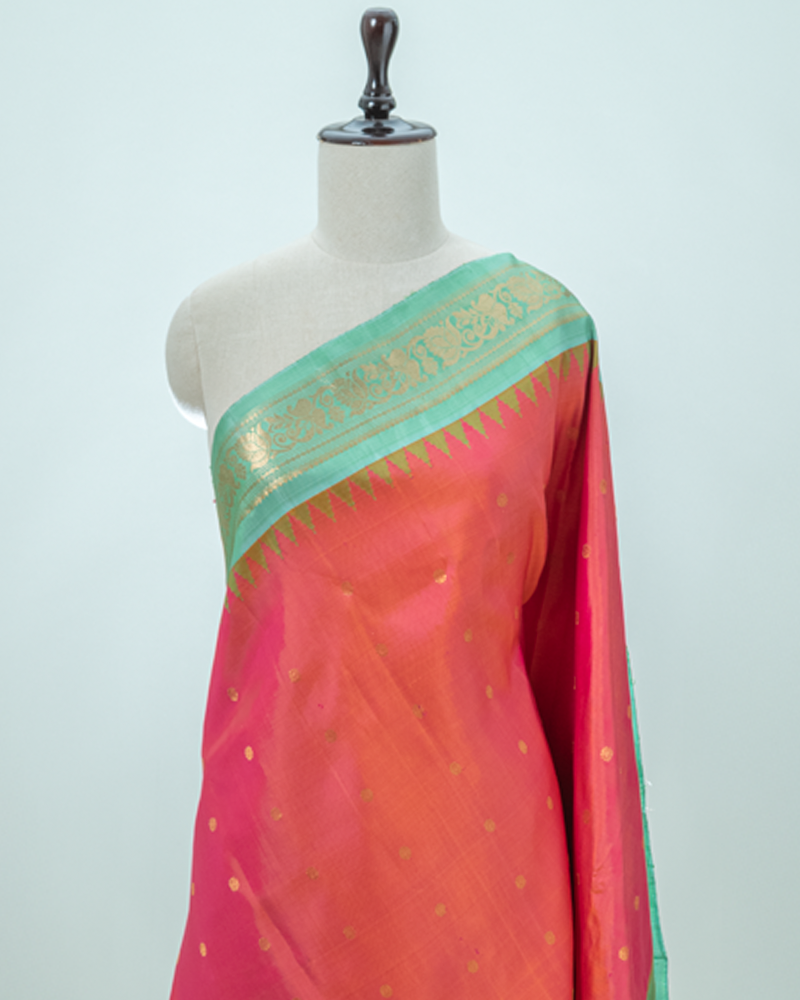 Crossandra & Green Kora Kanjivaram Silk Saree