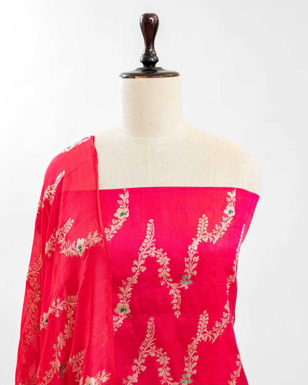 Vibrant Rani Pink Banarasi Kadhwa Kurta Set