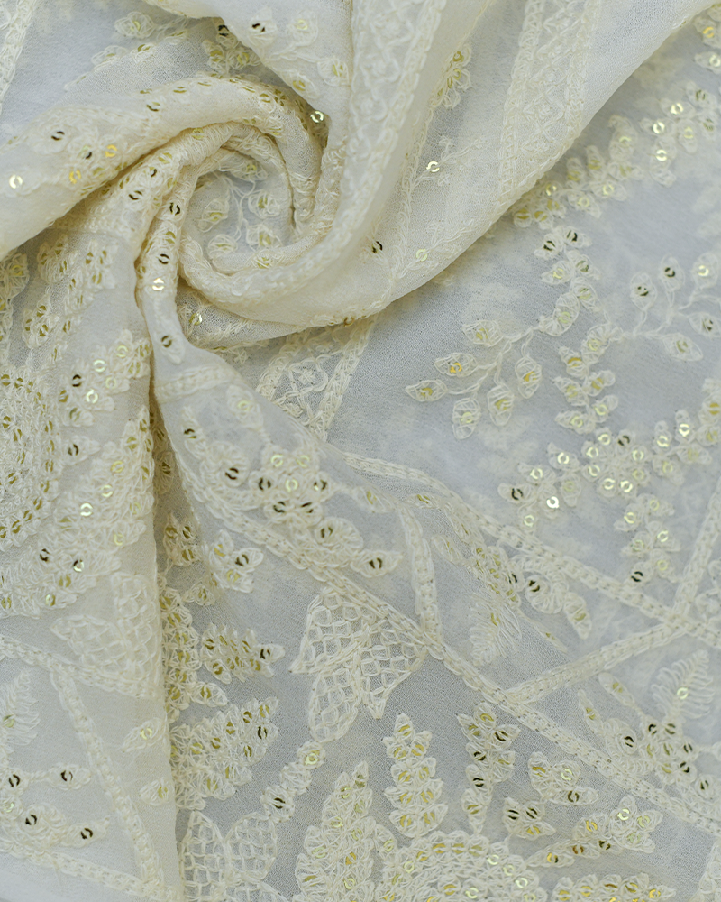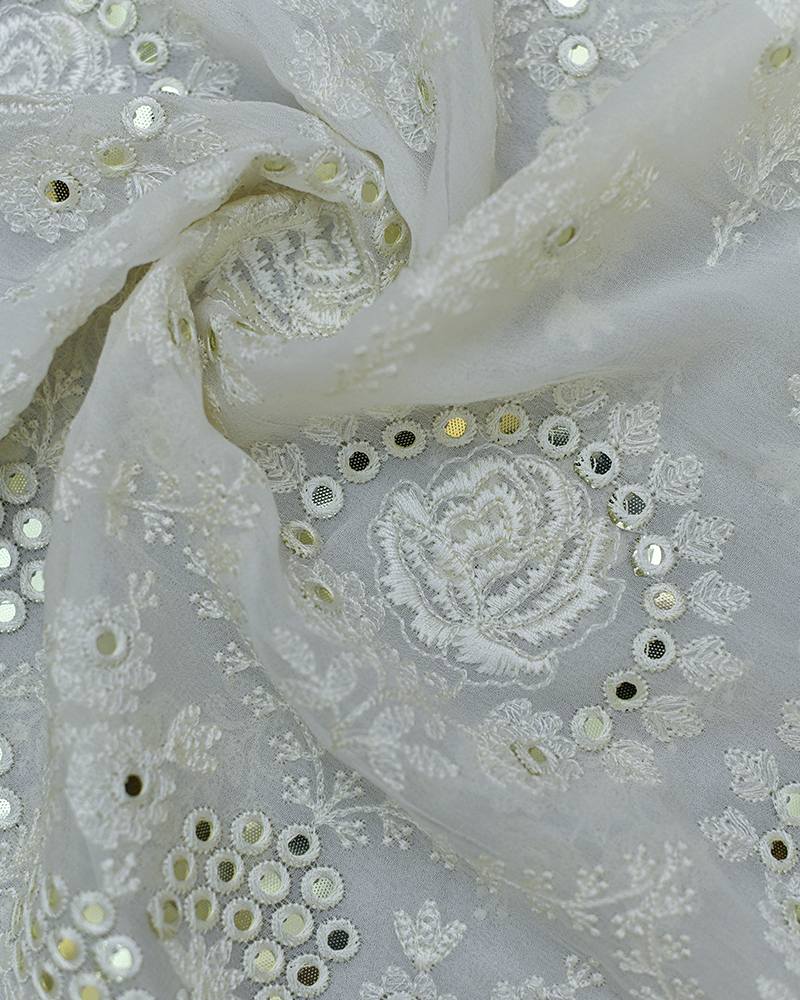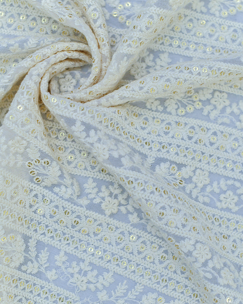 Off White Georgette Chikankari Fabric