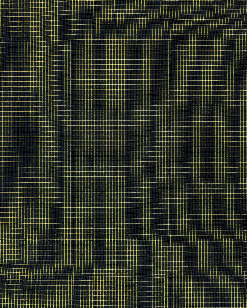 Black silk woven with fine gold zari kattam (checks), creating a sharp geometric pattern with lustrous finish and classic elegance.