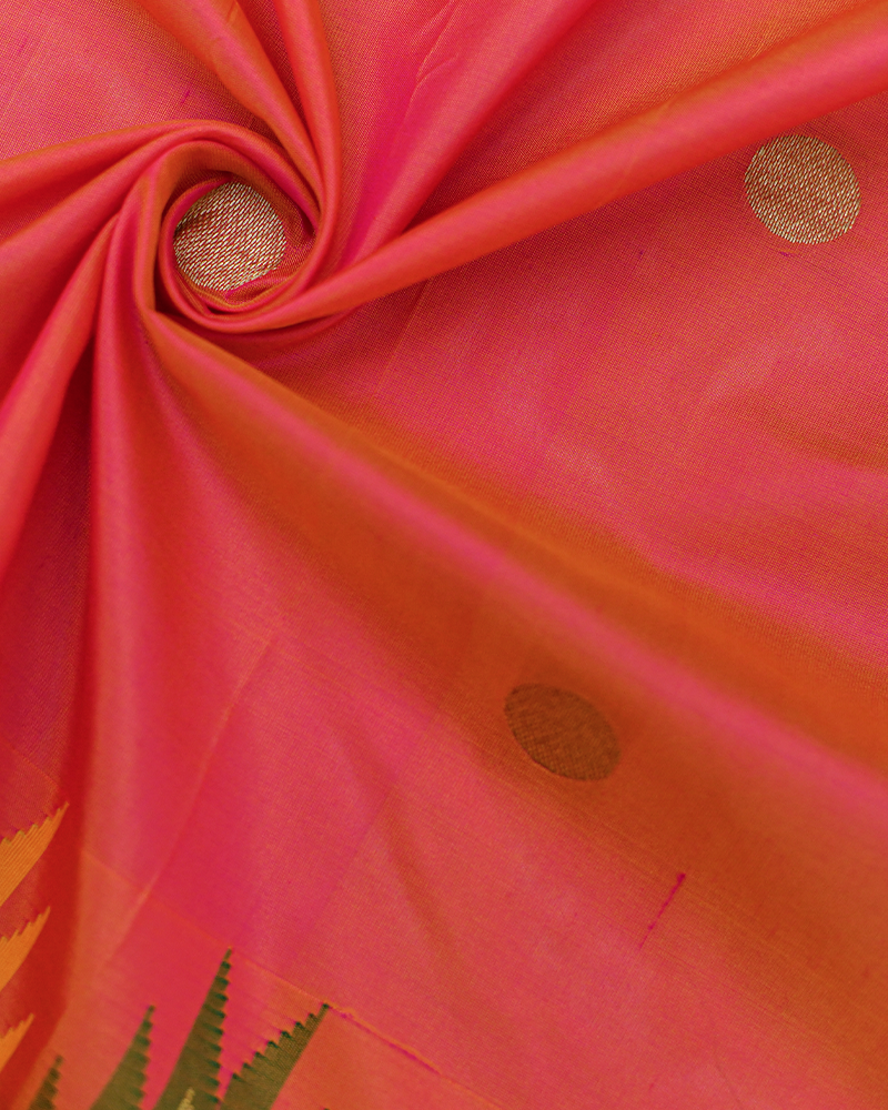 Dusty Rose Georgette adorned with intricate floral thread embroidery in gold and tonal hues, offering a fluid drape with rich surface detailing and refined festive charm.