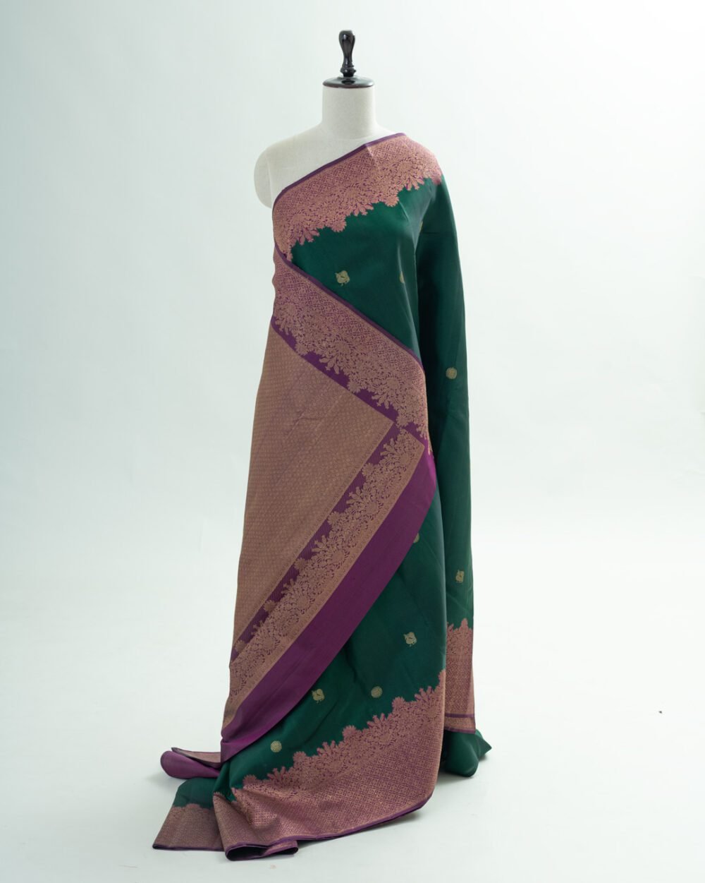 Elegant slate blue Coimbatore sico saree with subtle silver border.