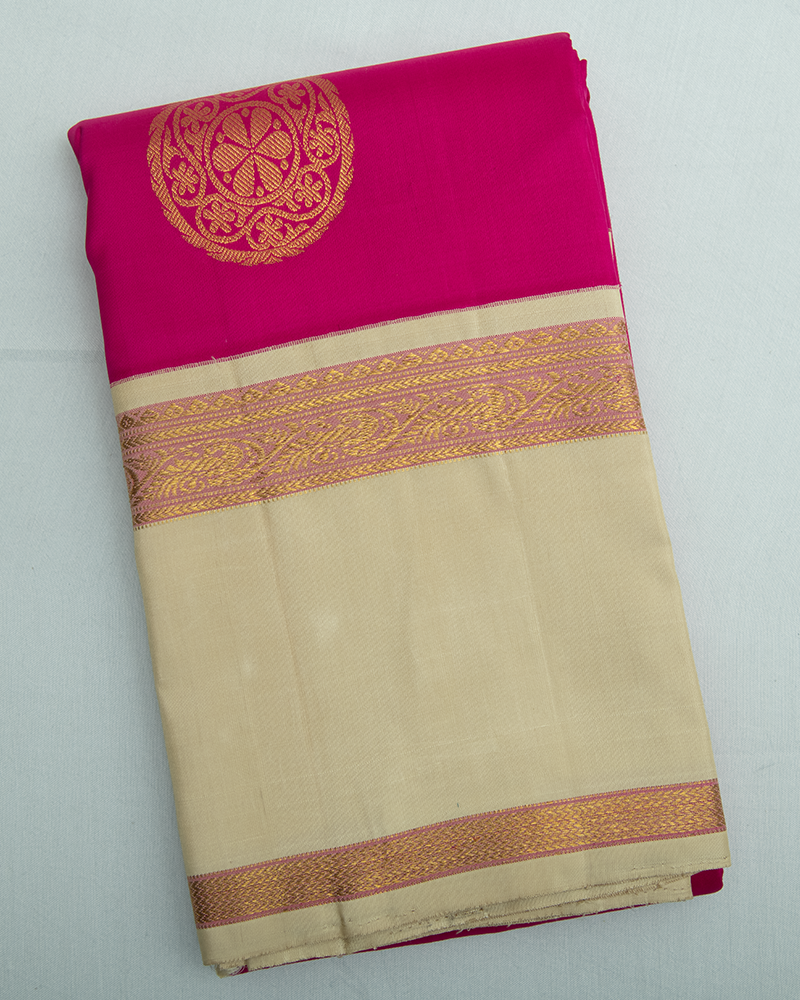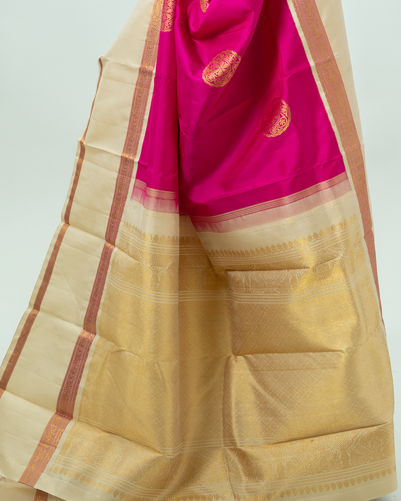 Hot Pink & Biege Kanjivaram Silk Saree