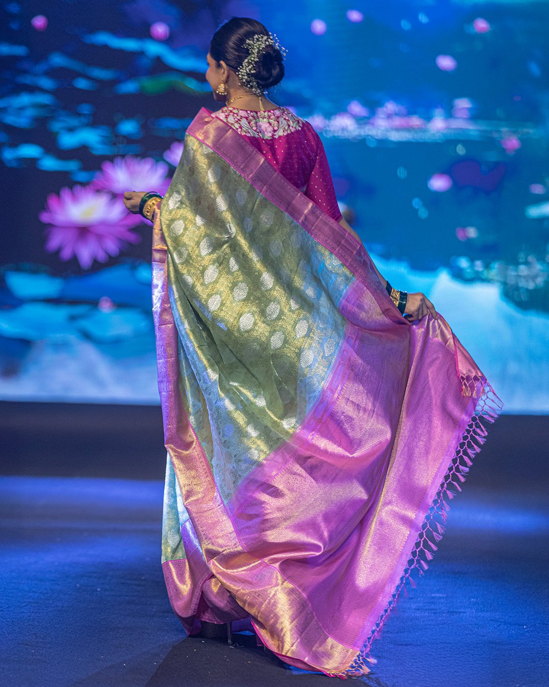 Parrot Green and Magenta Kanjivaram Saree, keeping the focus on its beauty, traditional colors, and richness: