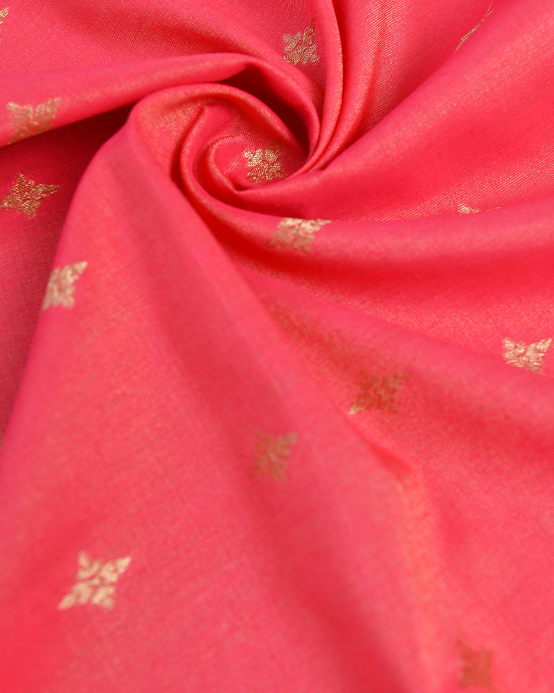 Royal Blue Chanderi unstitched dress material adorned with silver and gold zari buttas, accompanied by a gold dupatta featuring golden zari butti work.
