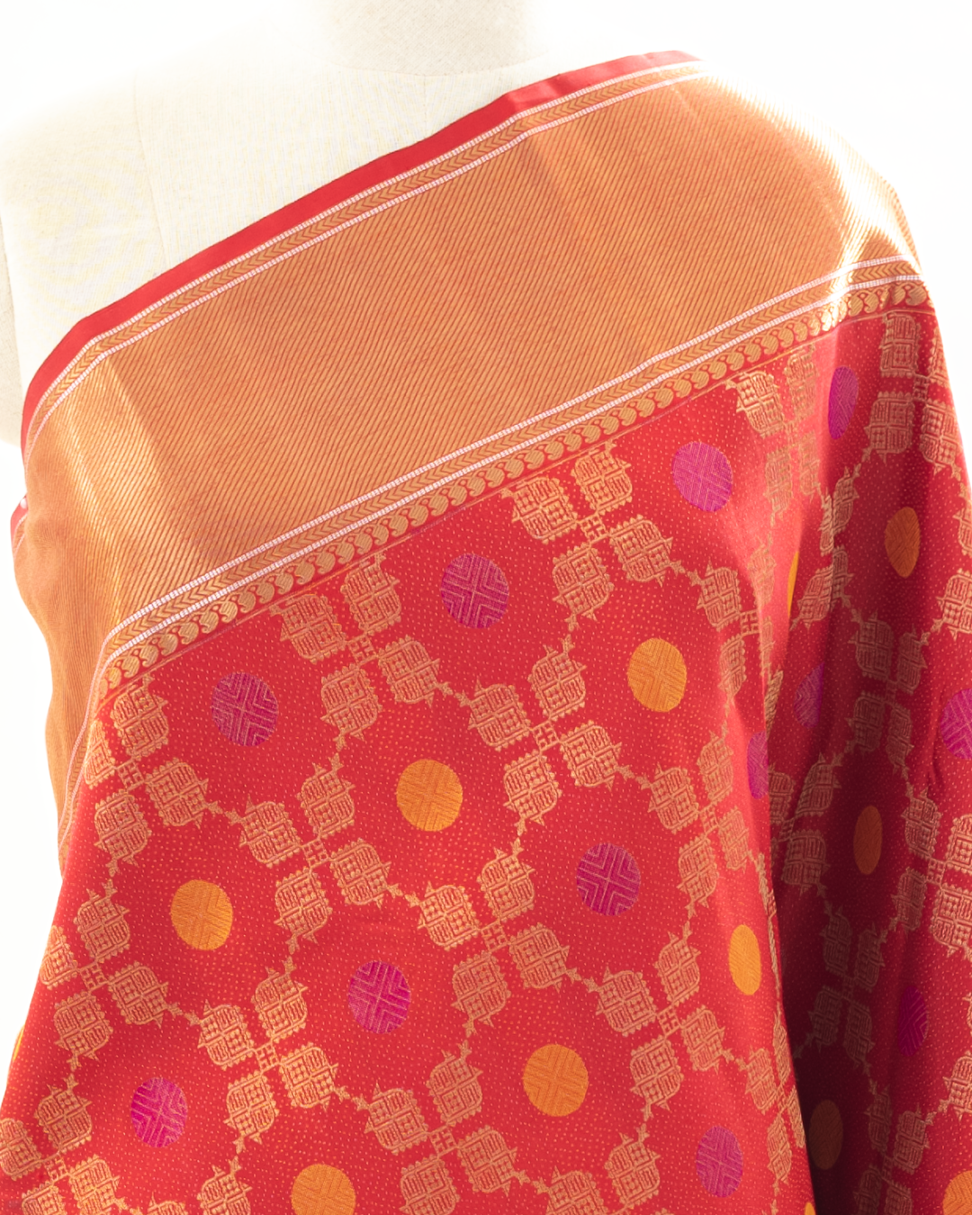 * Gently air it every 4–5 months to keep it fresh and vibrant. * Change the folds occasionally to prevent creasing. * For best results, roll the saree instead of folding it. * Store it in a soft cotton bag to protect the fabric. * Dry clean only to maintain its elegance and longevity.